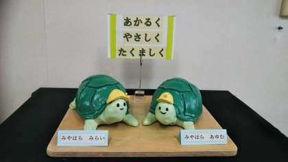 また、材料が粘土のものも誕生しました。今は職員室にいることが多いです。二人の名前はあゆむさん、みらいさんです。よろしくお願いします。