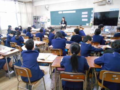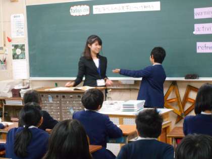 4年2組で英語の研究授業を行いました。英語が重要だという認識の高まりに合わせて、これから小学校でも英語の授業の時間が増えていきます。外国人の講師ではなく、担任が子ども達にどのような英語の授業をしていくのかについて、研修する機会も多くなっています。