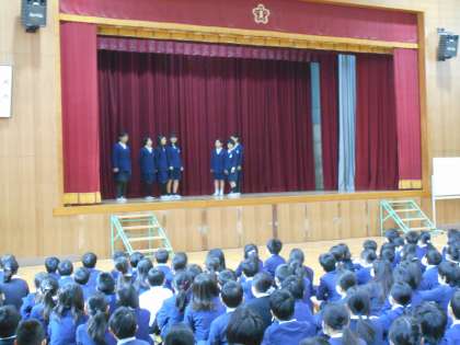 来週は児童会が中心となって「あいさつ週間」に取り組みます。今朝の児童集会では、児童会の子ども達があいさつの大切さを伝える劇を披露してくれました。