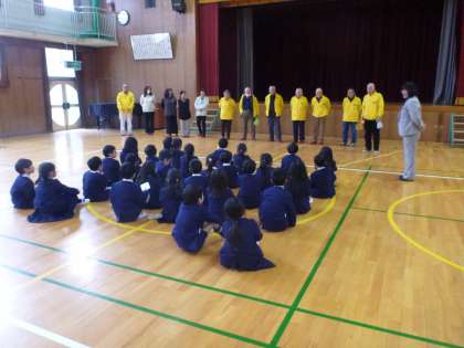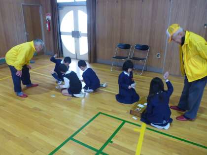 2月25日は,地域の方に来ていただきけん玉やお手玉などの昔遊びを教えていただきました。けん玉の仕方も詳しく教えてくださり,できなかった子もできるようになりました。たくさんの昔遊びを教わって楽しく遊ぶことができ,地域の方と交流することができ子どもたちも喜んでいました。