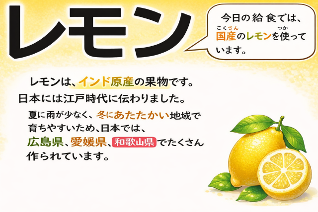 今日の献立は、あかうおのレモンじょうゆかけ、みそ汁、牛ひじきそぼろ、ごはん、牛乳です。