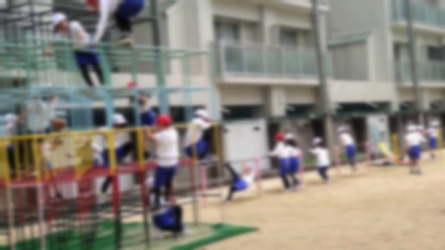 1年生は合同で体育をしていました。校庭の遊具を時間内に回るというものです。まるで子ども版トライアスロン。「だるまさんがころんだ」も有りました。みんな集中してたくさんの遊具を乗り越えていきました。