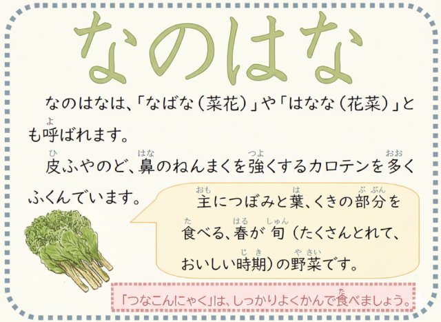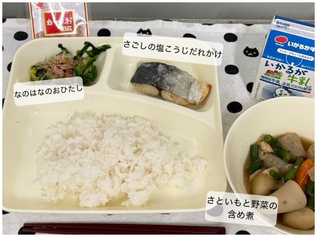 なのはなのおひたし、ごはん、牛乳です。