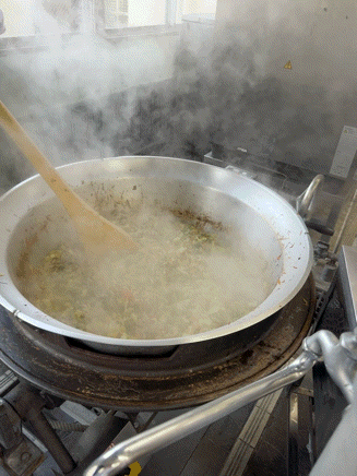 今日の献立は、ケチャップライス、スープ、れんこんフライ、 牛乳です。