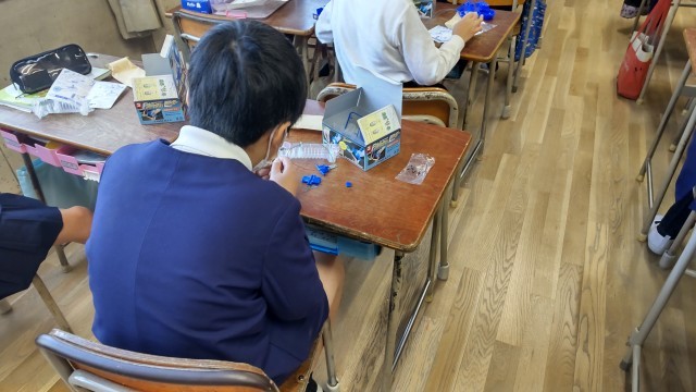 懐中電灯を作っていました。細かい作業で苦労していました。出来上がりが楽しみですね。