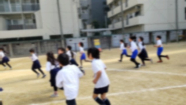 休み時間になると、音楽とともに子どもたちが校庭をぐるぐる走ります。それぞれのペースで、1212…