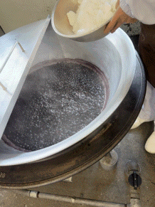 楽しい給食の時間がやってきました。子どもたちが食缶や食器を取りに給食場に来ました。手を合わせて、大きな声で、いただきます!と言って、あいさつをしてから受け取ります。今日のお雑煮はおいしかったね!