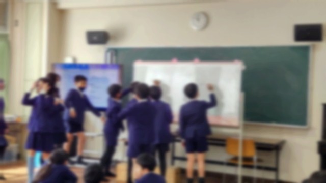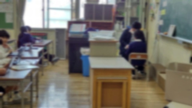 担任の先生から、子どもたちに最後の大切なお話が語られているクラス。