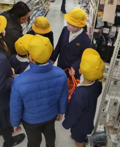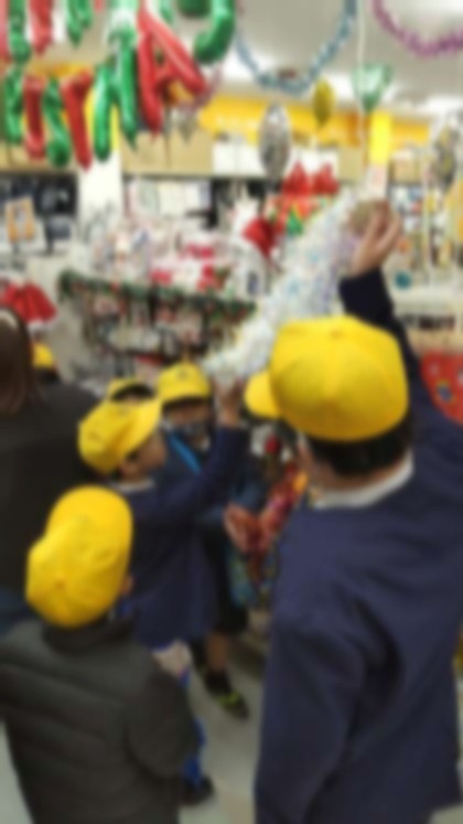 班で相談して決めた飾りや材料をお店に買いに行きました。その様子をご覧下さい。
