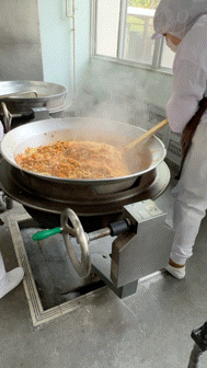 給食では、コチジャン、こいくちしょうゆ、ケチャップ、料理酒、みりんで作ったたれを揚げた鶏肉にからめています。