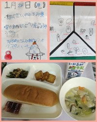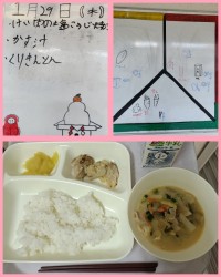 本日の給食は      ・鶏肉の塩こうじ焼き    ・かす汁...