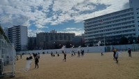 運動場から楽しそうな声が聞こえてくると思ったら、1年生が凧揚げをしていました。...