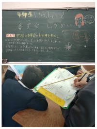 5年生が4年生に委員会活動を紹介しました。 分かりやすく説明する5年生と、メモ...