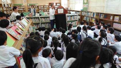 一回目の今日は、1、2年生の人たちが、図書室の絵本コーナーのたくさん集まりました。