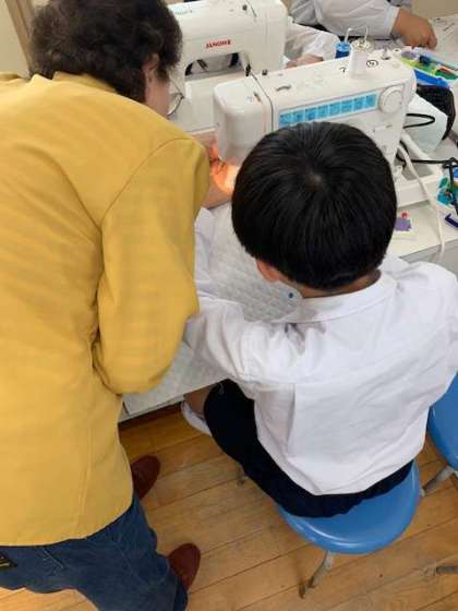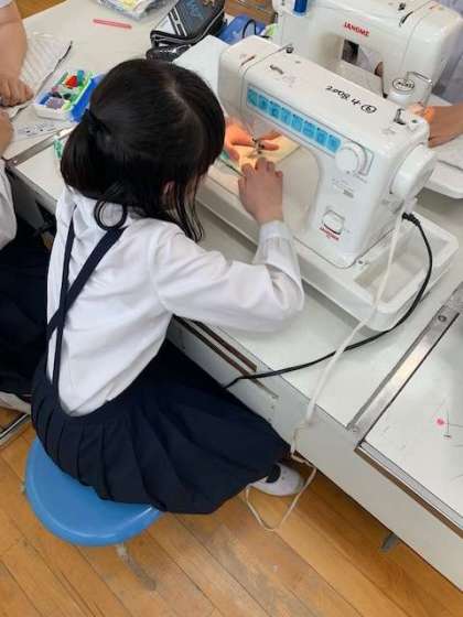 今回は、ミシンを使っての学習でした。5年生で習ったことを思い出いながらがんばって取り組みました。