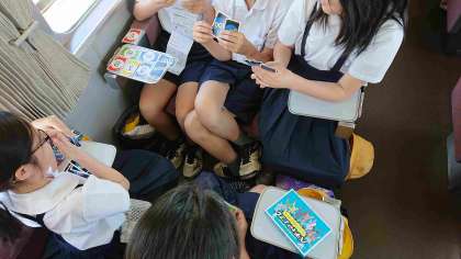 修学旅行専用の電車に乗るやいなや、トランプやウノなどのカードゲームで大盛り上がりです。