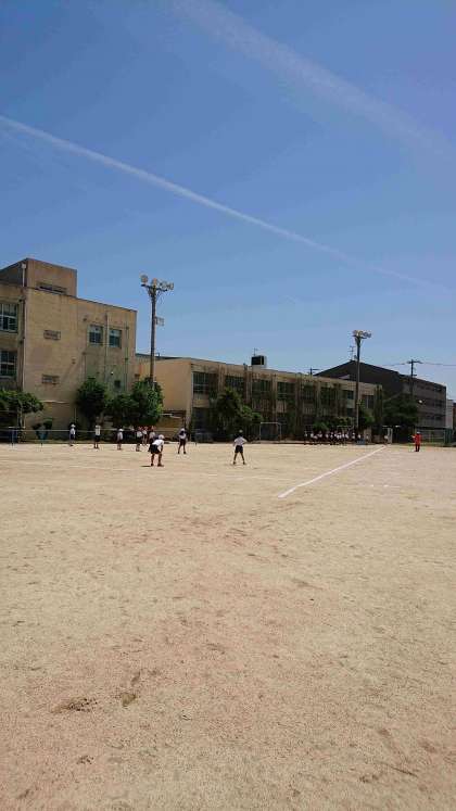 この日は、運動場で50m走とソフトボール投げを行いました。