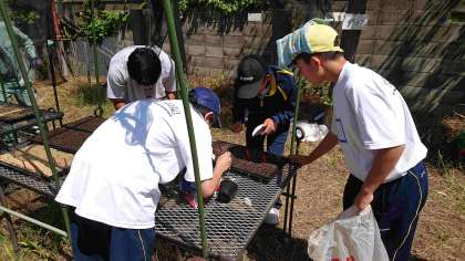 みんな本校の卒業生。挨拶もしっかりとでき、いろいろな作業にも真剣に取り組むなど、さすが中学生だなと感じました。