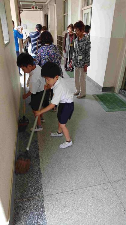 たくさんの地域の祭の婦人会の方々が、1年生のお掃除の応援に来てくださいました。