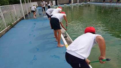 今日の委員会活動で、運動委員会がプールサイドなどの掃除をしてくれました。