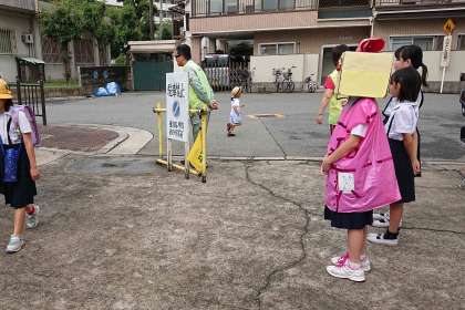 東淡路小学校のあいさつキャラクター、「あいちゃん」と「さつくん」も大人気で、わざわざ近寄って「おはようございます。」とあいさつする人もいました。