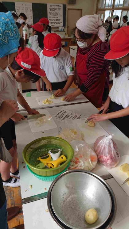 「人参の丸いところが切りにくい。」などと言いながら、一生懸命切っていました。