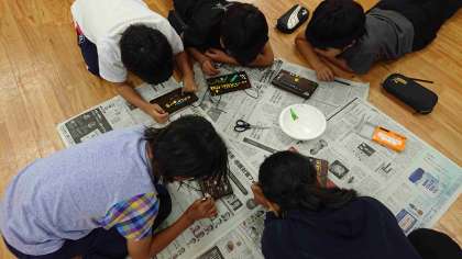 魚つかみや沢登り、キャンプファイヤーや山登り等、楽しかったことを思い出しながら思い思いに作りました。