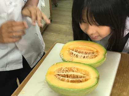 また、メロンは二つに切ると、おいしそうなにおいです。