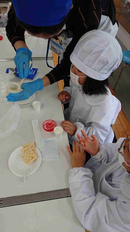 バターは、クラッカーにぬっていただきました。「これまで食べたバターの中で一番おいしい!」と話す人もいて、みんな大満足でした。