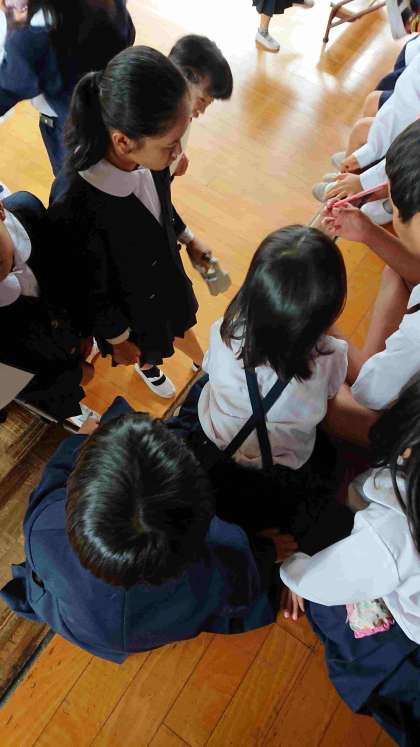 今日は、6年生が、反復横とびや握力測定、立ち幅跳びにチャレンジしました。