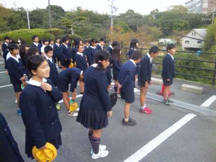 閉舎式です。この後バスへ乗って鳥羽水族館へ向かいます。