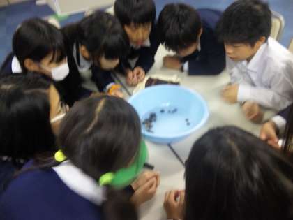 みんな熱心に観察しています。ウニとヤドカリですね!
