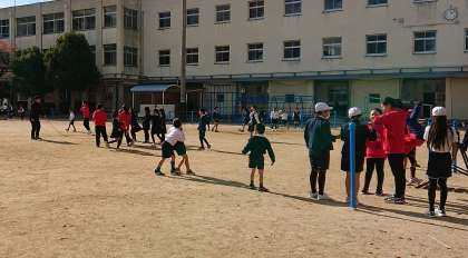 昼休みは、おにごっこや長縄、サッカーやバスケットボールなどで楽しいひとときを過ごしました。やはり一緒に遊ぶと心の距離がぐっと近づきます。