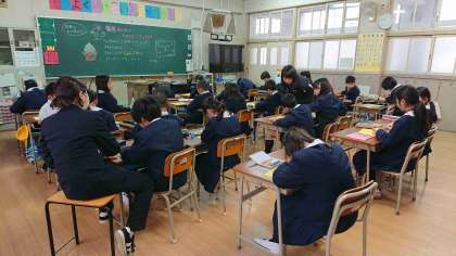 始業式では、「次の学年を迎える準備をしよう」ということで、3学期に「これだけはできるようになろう」という目標をたててがんばること、また、友だちのがんばりも言葉にして認めてあげよう、というお話をしました。