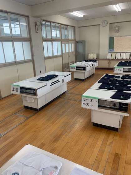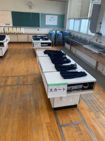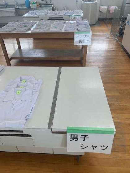 本日の学級懇談のあとには、PTA学級委員さんによるリサイクル服配布会が家庭科室であります。