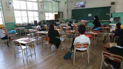 教室では写真を見るなどしながら、友だちや先生と過ごした数々の楽しかった思い出を振り返り、別れを惜しんでいました。