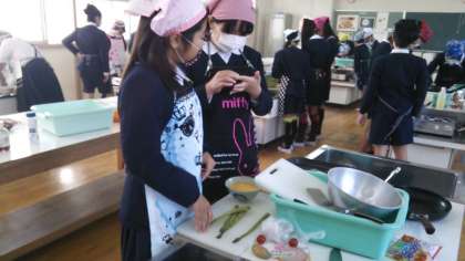 6年生になって2回目の調理実習は「お弁当づくり」でした。
