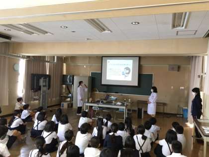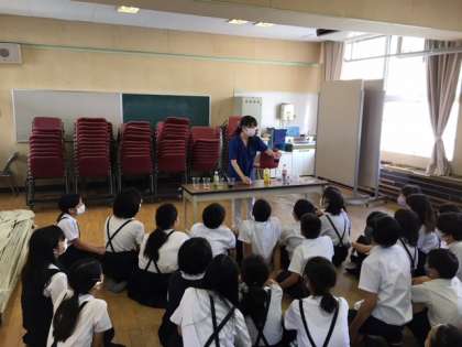 6年生は学校薬剤師の方から正しい薬の使い方について学びました。薬は水かぬるま湯で飲むことや決められた量を守って飲むこと、もし、ジュースなどで薬を飲んでしまうと、薬の成分が変わってしまうことについては実験も交えて学びました。