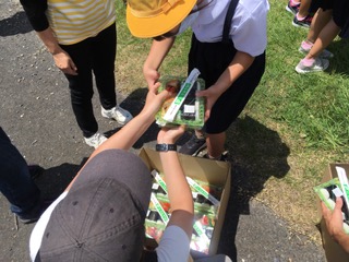 お弁当を分けています。