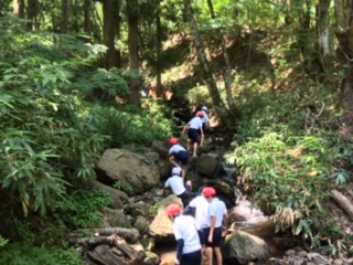 魚つかみと並行して、近辺の沢を登っています。夢中になって何度も登る子もいます。