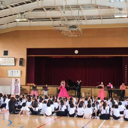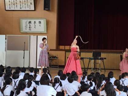 ローゼンビート音楽研究所のみなさんによる音楽鑑賞会がありました。オペラ歌手の美しい歌声やさまざまな種類のリコーダーや木・金管楽器をつかった演奏、弦楽器もクイズ感覚で子どもにもわかりやすく説明がありました。ボディパーカッションや手話を使った歌は子どもたちも一緒にしました。子どもたちは生の演奏を楽しく聴くことができ貴重な機会になりました。