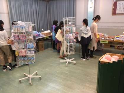 1組2組で分かれて、入浴と買い物です。買い物は子どもが買いやすい値段での品揃えです。