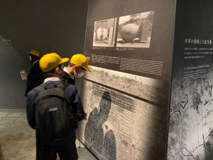 ピース大阪では第二次世界大戦の大阪空襲について、映像資料や展示、ビデオ上映等を通して学びました。子どもたちは実際に資料を見ることで、戦争の悲惨さをあらためて感じているようでした。