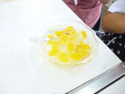家庭科クラブでは、毎学期最終回に調理活動を予定しています。今回は、アイスクリーム入りのフルーツポンチでした。