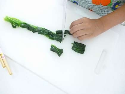 ほうれん草は、お湯から、くきを先に。