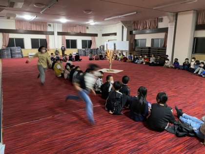 ハンカチ落としや私は誰でしょうゲームで盛り上がってます。