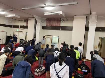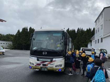 閉舎式で宿舎の方に感謝の気持ちを伝えて、13時過ぎに予定通りバスに乗って出発しました。