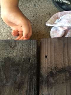 写真の左側のような板をたわしでこすって右側のようにきれいにします。