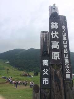 ハチ高原のモニュメントの前でクラス写真を撮り、いよいよ鉢伏山に向けて出発です。