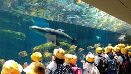アシカが前を泳ぐ度にみんなで拍手するかわいい2年生でした。